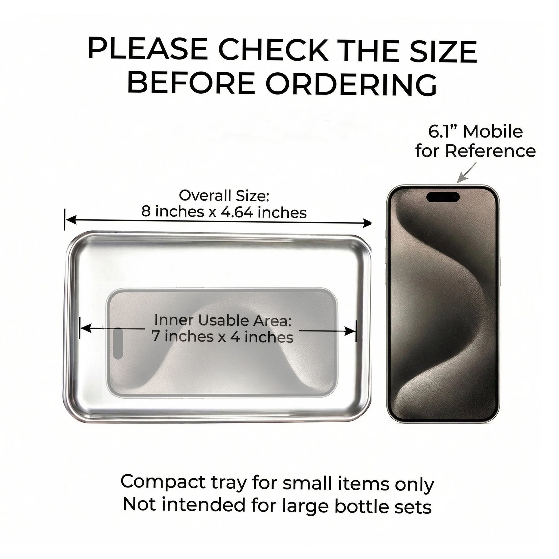 IMEEA Small Vanity Tray, Stainless Steel Jewelry & Perfume Tray, Compact Bathroom Countertop Organizer, 8 x 4.64 Inch